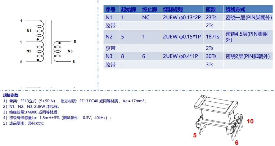 在電源管理系統中,變壓器是一個關鍵組件,它負責電壓的轉換和隔離。BPA8505D參考設計中的變壓器規格書提供了變壓器的詳細參數,包括工作頻率、額定功率、電壓比、絕緣等級和物理尺寸等,確保變壓器能夠滿足設計要求并安全運行。