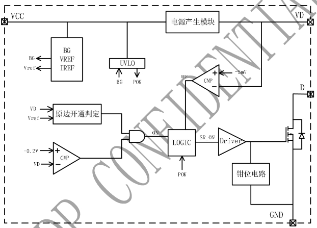 LP05R045T采用的專利整流管開通技術,通過檢測D和GND之間的下降電壓閾值和下降速率,準確判斷同步整流管的開啟。這種技術有效避免了因激磁振蕩引起的誤動作,提高了整流的準確性和可靠性。