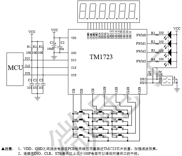 TM1723是一種帶鍵盤掃描接口的LCD驅動控制專用電路,內部集成有MCU 數字接口、數據鎖存器、LCD