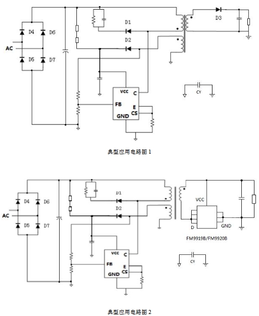 FM3783GA/FM3783GB的典型應(yīng)用電路簡(jiǎn)單明了,外圍元件少,便于設(shè)計(jì)和調(diào)試。以下是其典型應(yīng)用電路示意圖: