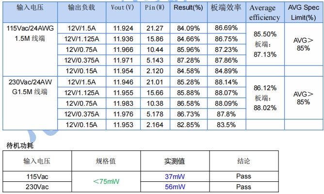 在不同輸入電壓(90Vac、230Vac、264Vac)和負載條件下,對電源的輸出電壓精度、效率、紋波等關鍵參數進行了測試。測試結果顯示,電源在各種條件下均能滿足設計要求,輸出電壓精度高,效率穩定,紋波控制良好。