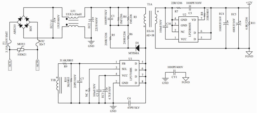 LP3718BS+LP25R060S有Y有共模12V1.5A電源適配器方案Demo資料