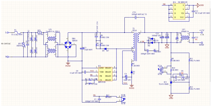 BP8705D參考設(shè)計(jì):12V/1.5A 電源方案詳解(變壓器規(guī)格及PCB設(shè)計(jì))