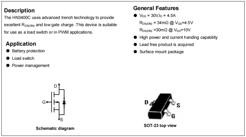 HN3400,HN3400B,HN3400C 30VN溝道增強型電源管理MOS詳細解析