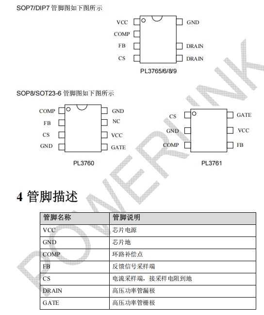 PL376X系列隔離型LED恒流驅動芯片(PL3760,PL3761,PL3765/6/8/9)