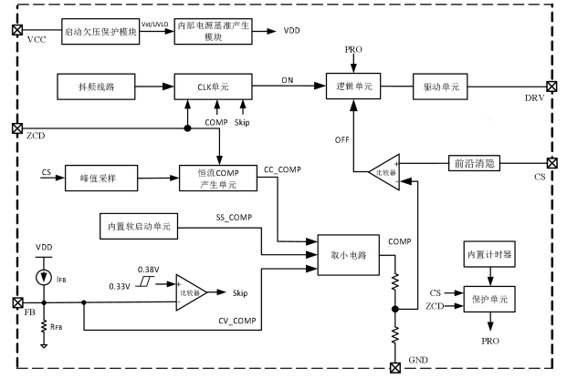 LP8841SA高頻QR反激恒壓恒流控制器內部框架及典型應用圖