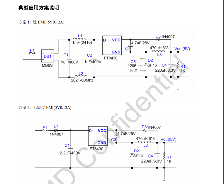 FT8430采用超高壓工藝,內部集成高壓啟動電路,高壓功率開關,以及電流采樣電阻,減少了外部元器件,極大地簡化了系統(tǒng)應用。內置的頻率抖動和軟驅動設計能有效提高EMI性能。
