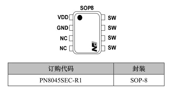 PN8045集成PFM控制器及650V高雪崩能力智能功率MOSFET,用于外圍元器件較簡的小功率非隔離開關電源。PN8045內置啟動模塊,實現系統啟動、待機功能。該芯片提供了智能化保護功能,包括過載保護,欠壓保護,過溫保護。另外PN8045的降頻調制技術有助于EMI特性。