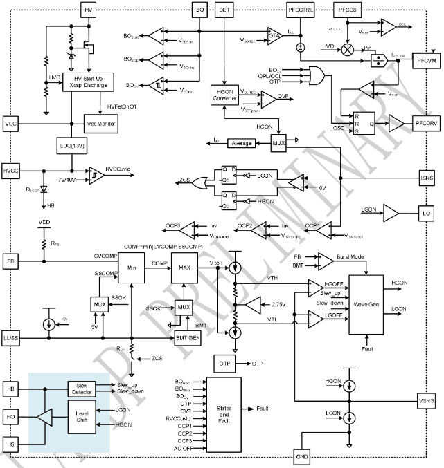 集成PFC:內置的PFC控制器可以提高功率因數,減少諧波失真。