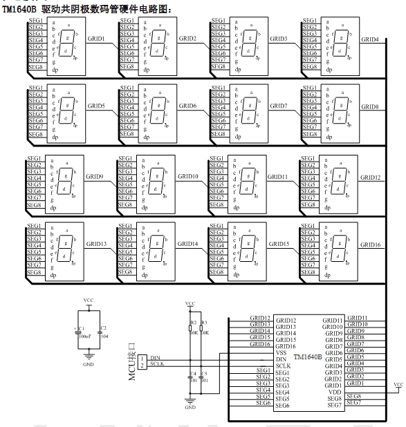 TM1640B芯片通常采用DIP或SOIC封裝,以下是其主要引腳的功能描述:
